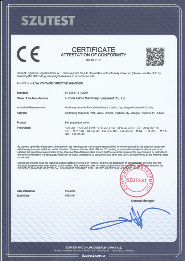 • 大連國際技術(shù)機(jī)械貿(mào)易公司定購了176臺(tái)SPS-2D拉繩開關(guān)